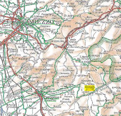 Map of part of the Provincia di Arezzo. Valuberti is highlighted in yellow. Click to enlarge.